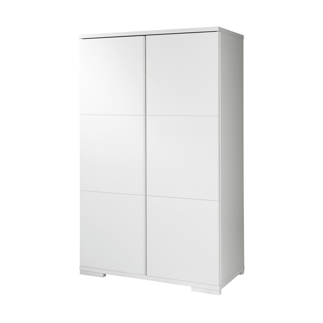 Meuble de rangement en MDF avec grande capacité, poignées et pieds blancs.