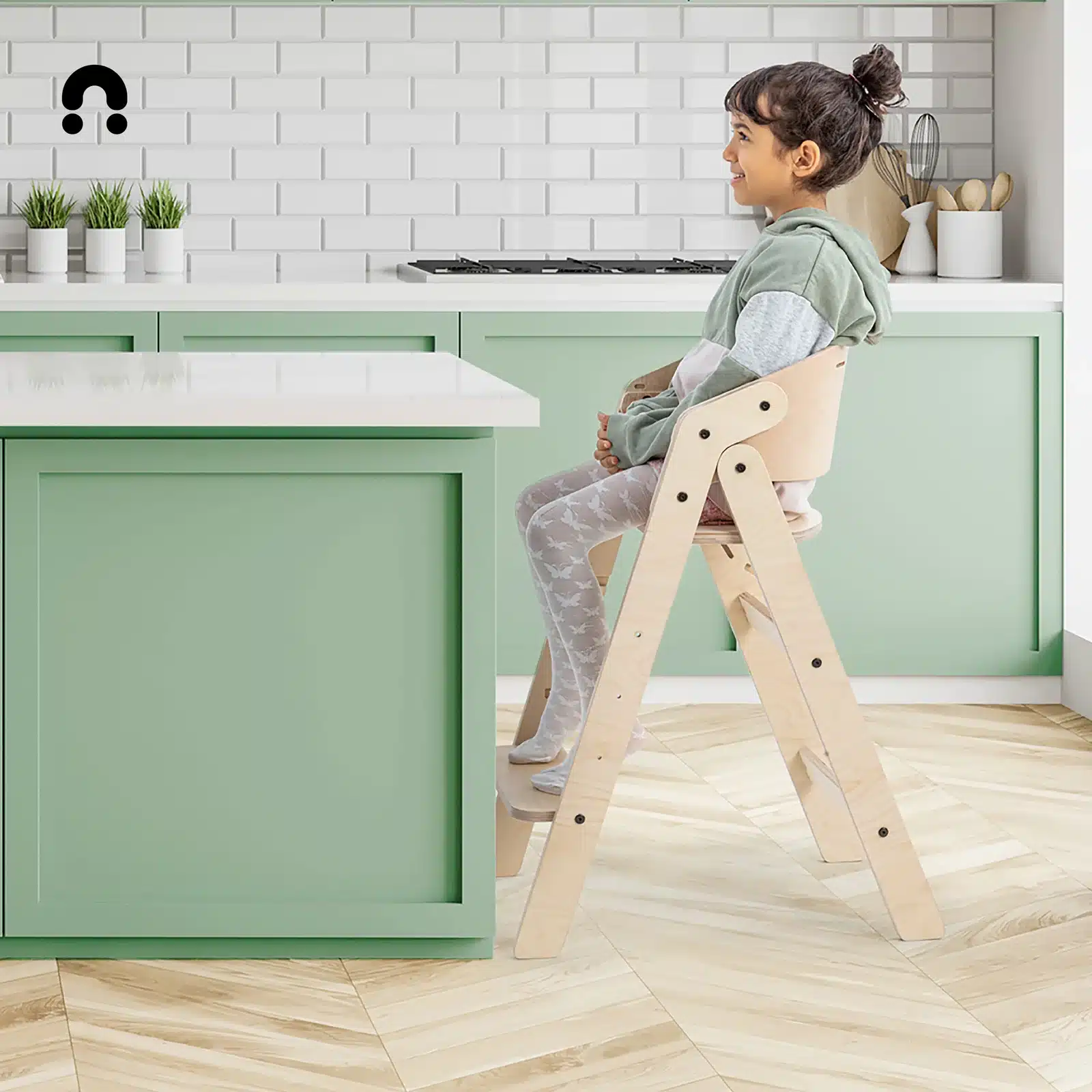 Les marchepieds intégrés permettent à l’enfant de monter et descendre seul en toute sécurité, encourageant ainsi l’autonomie dès le plus jeune âge. Son design en bois naturel s’intègre parfaitement dans une cuisine ou une salle à manger, tout en prenant un minimum d’espace.