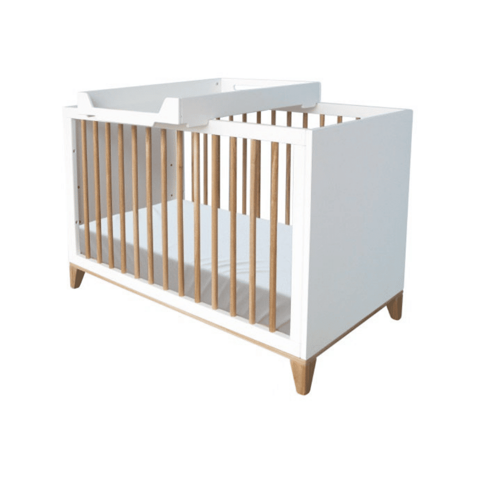 En effet, différentes configurations sont possibles en plus de celles mentionnées ci-dessus. Vous pouvez également choisir la position canapé en retirant l’un des deux côtés à barreaux ou ajouter le plan à langer en option qui s’adapte au lit sans adaptateur, de manière sûre et confortable pour vous et votre enfant.