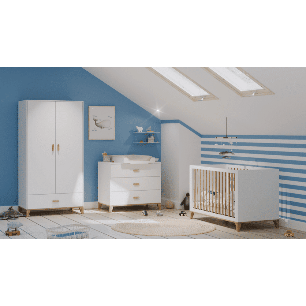 Très pratique, ce lit bébé de 60 x 120 cm vous offrira deux hauteurs de sommier différentes qui s’adapteront naturellement à l’évolution de votre petit. Lorsque l’enfant grandira, vous pourrez alors le transformer en banquette ou en lit junior (kit de transformation disponible en option).
