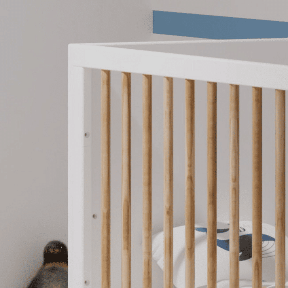 L’autre côté est plein, pour limiter au maximum le risque de chute pendant la nuit. Installés ensemble, ils permettent de transformer le lit bébé en lit enfant.