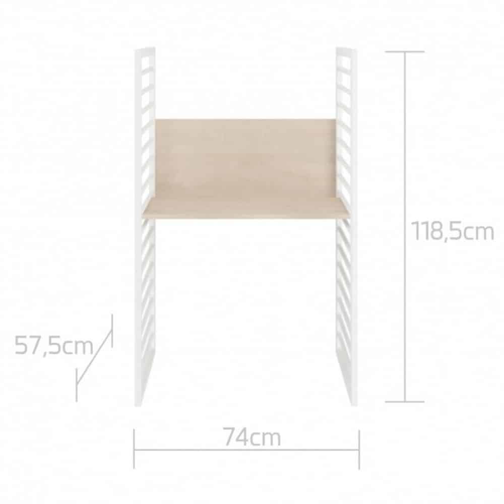 Devenu bureau à hauteur amovible, ses barrières se transforment en supports pour accrocher toutes sortes de souvenirs, d’accessoires de décoration ou d’objets utiles pour faire ses devoirs.