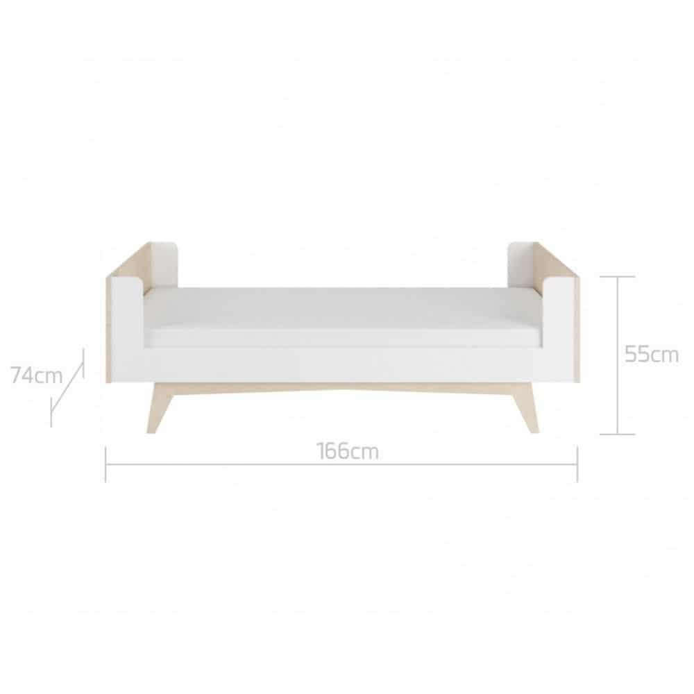- Le lit peut être étiré à 166 cm et utilisé plus longtemps jusqu’à environ 10 ans