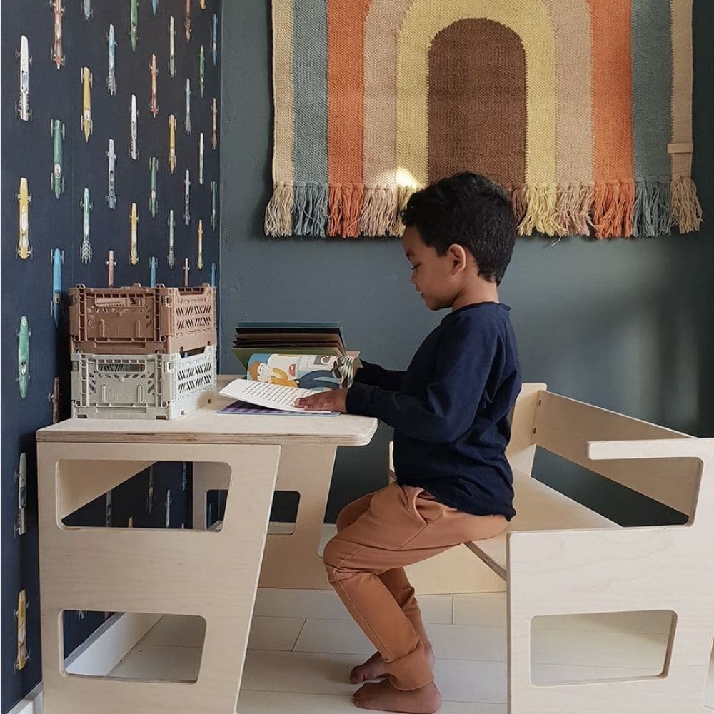 Associez cet intissé à des matières naturelles telles que le rotin, vous permettra de créer une ambiance chaleureuse et très tendance. Dans cette chambre de bébé, on pourrait imaginer un joli miroir-soleil en rotin suspendu, accompagné d’un berceau en rotin ainsi que des malles de rangement en paille (disponibles sur l’e-shop) !